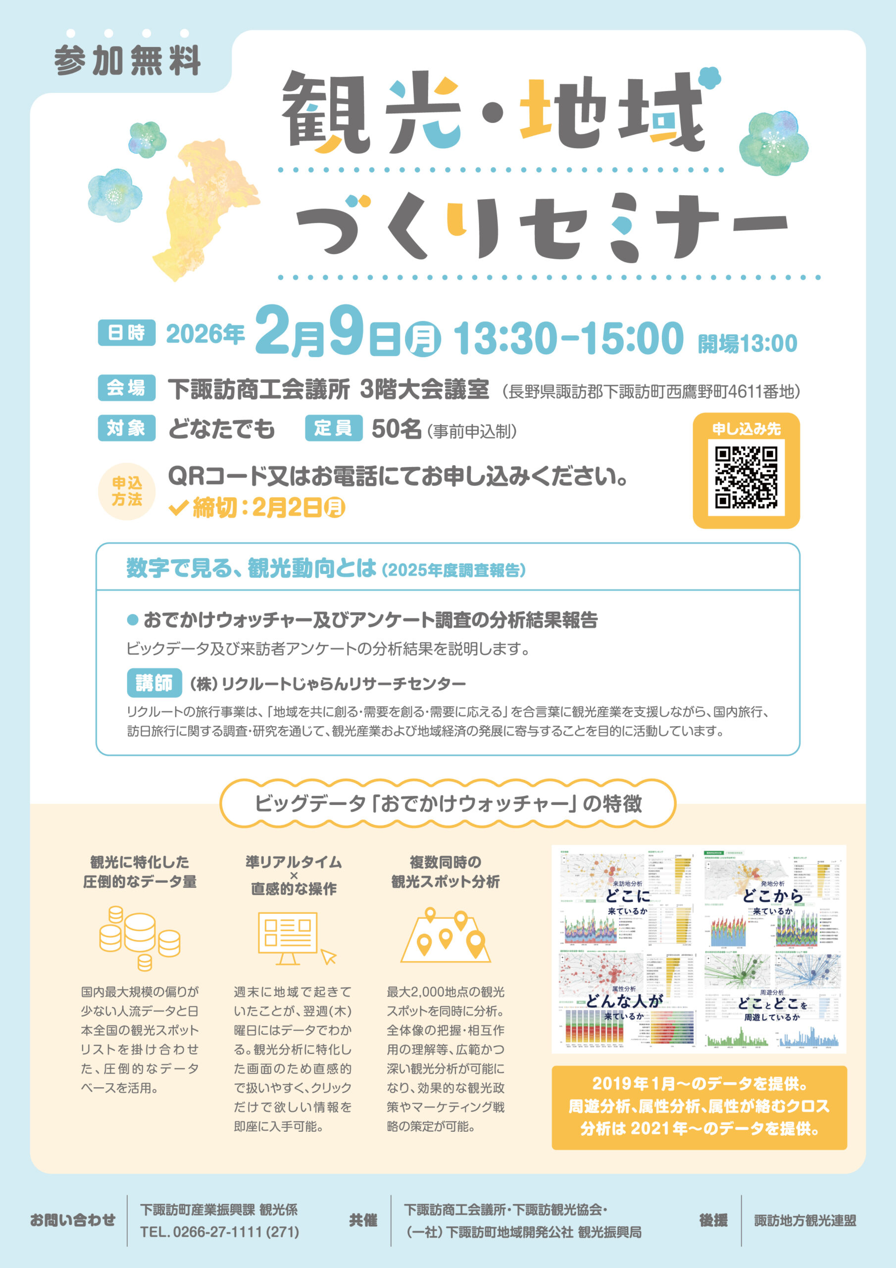 下諏訪町産業振興課 観光係 TEL0266-27-1111(271)