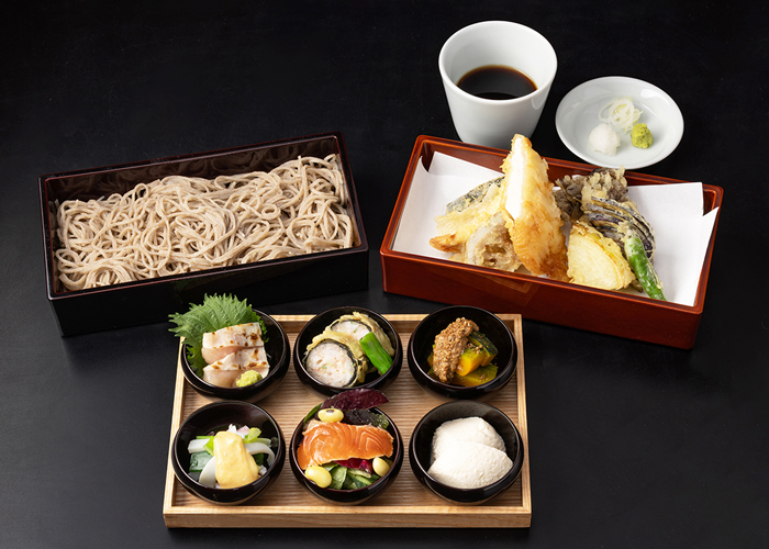 2日目の昼食は、善光寺表参道 たき澤で“季節薫る信州前菜六種とかしわ天そば”をご用意♪信州ならではの食材をもちいた前菜6種や、信州産のそば粉を中心に使用した蕎麦をぜひご堪能ください。