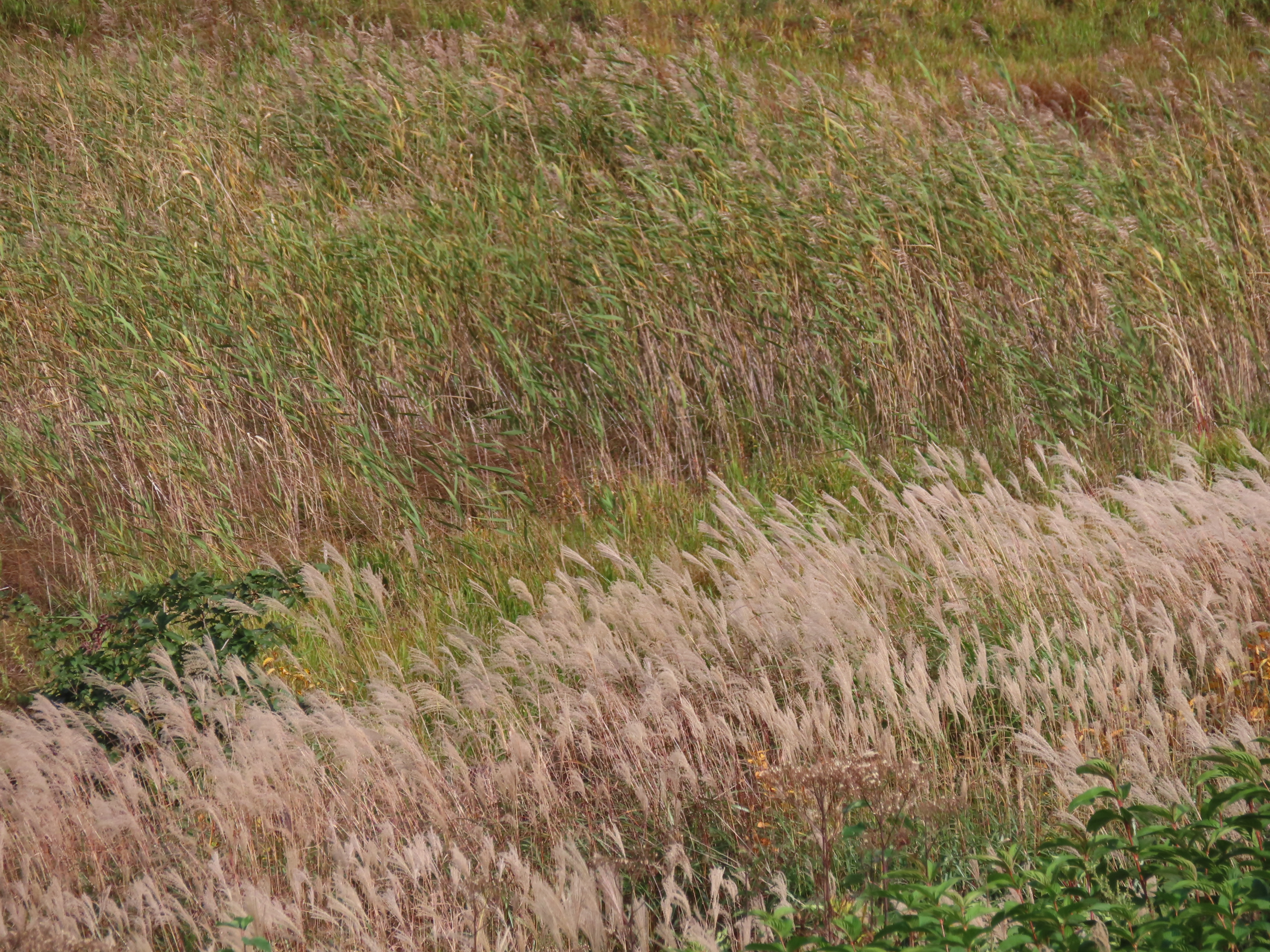 ヨシとススキが秋の風に揺れています。