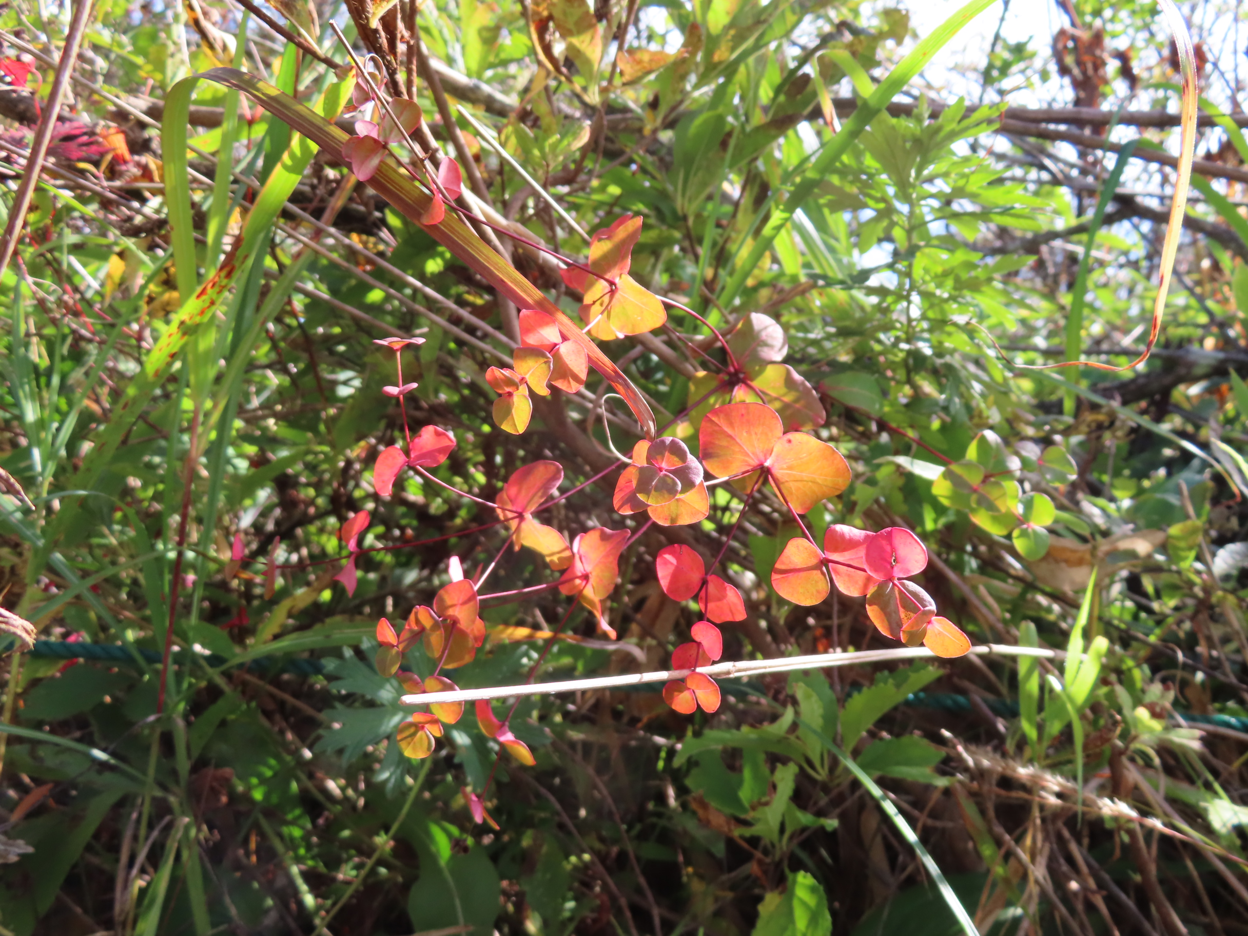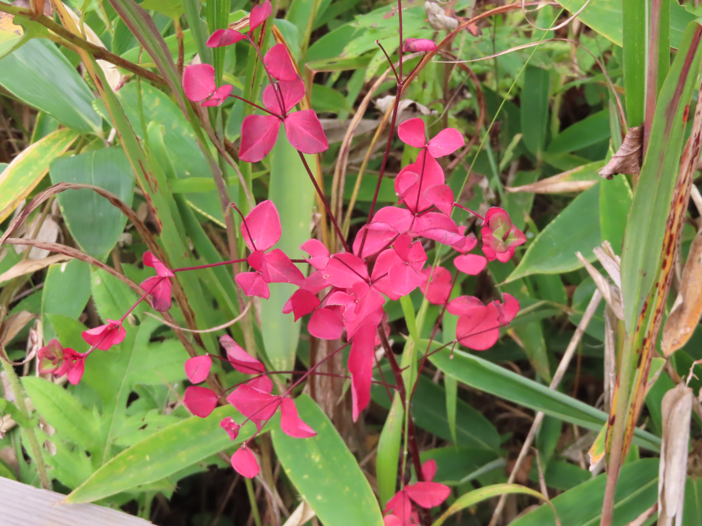 様々な植物に紅葉が見られます。タカトウダイは綺麗に赤く染まっています。