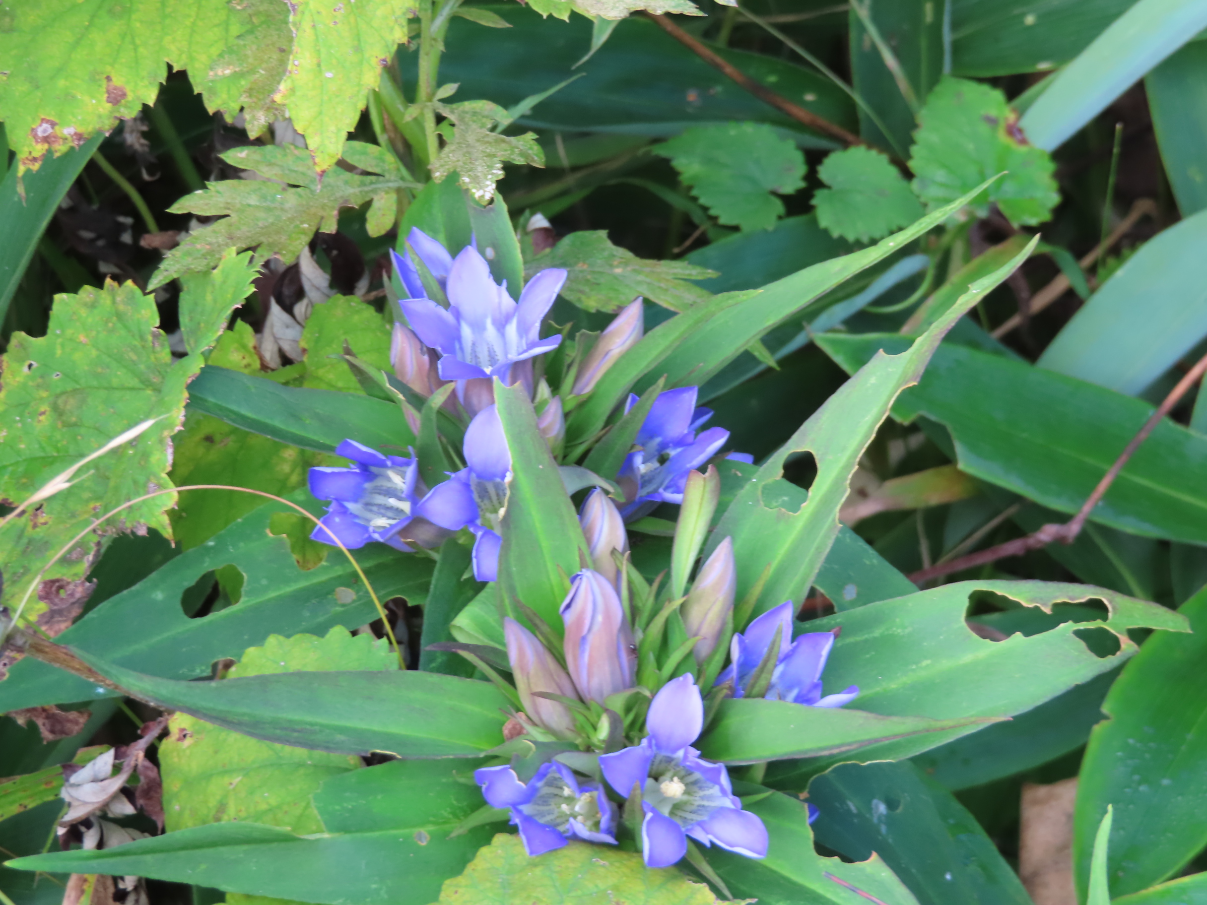 リンドウは、よく見ると茂みの中にたくさん咲いています。