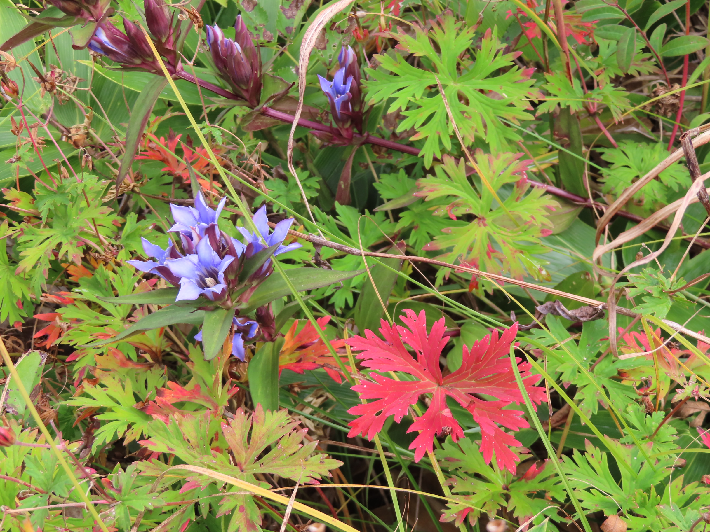 フウロ属の紅葉とリンドウのコントラストが美しいです。