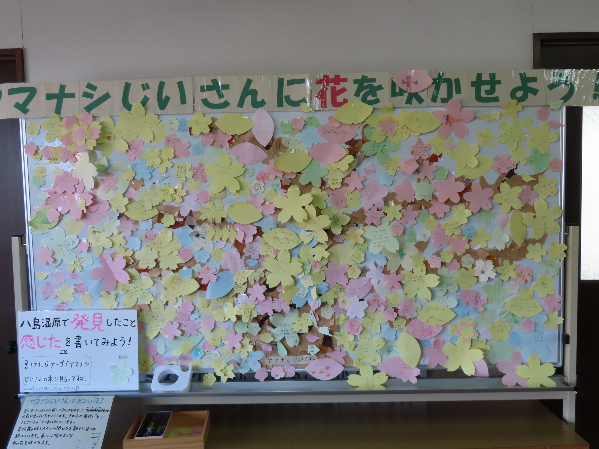 今シーズンも当館2階のコーナーには多くのメッセージが寄せられました。ヤマナシじいさんも季節外れの満開です!